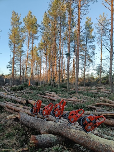 Metsuritöihin tarvittavat välineet vaikeidenkin puiden kaatoon ja käsittelyyn.