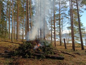 • Kohteella järjestettiin talkoot, joissa siivottiin koneellisen puuston poiston jälkiä. Hakkuutähteet kasattiin polttoa varten ja kivennäismaalaikkuja paljastettiin haravoimalla.